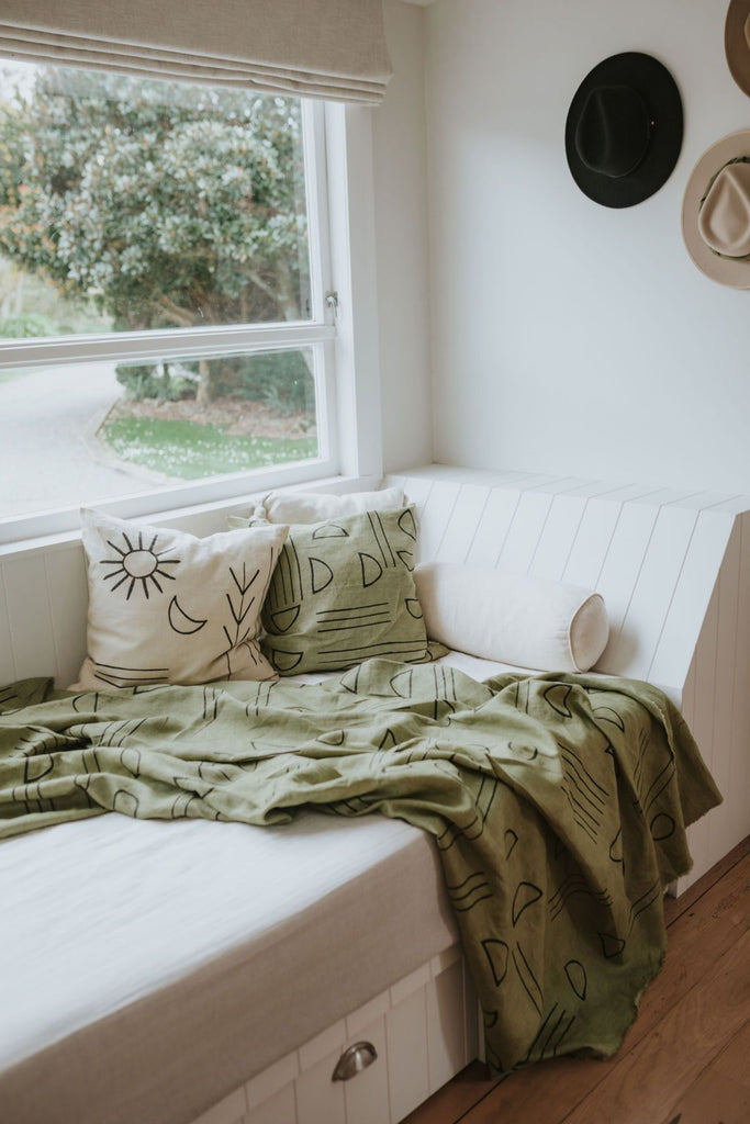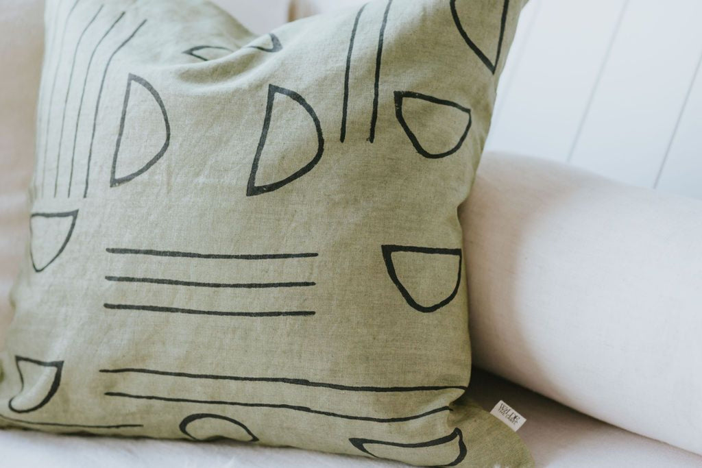 Our beautiful cushion covers are made of 100% linen and are hand-block printed, using natural, non-toxic dyes. Concealed matching colour zip closure.